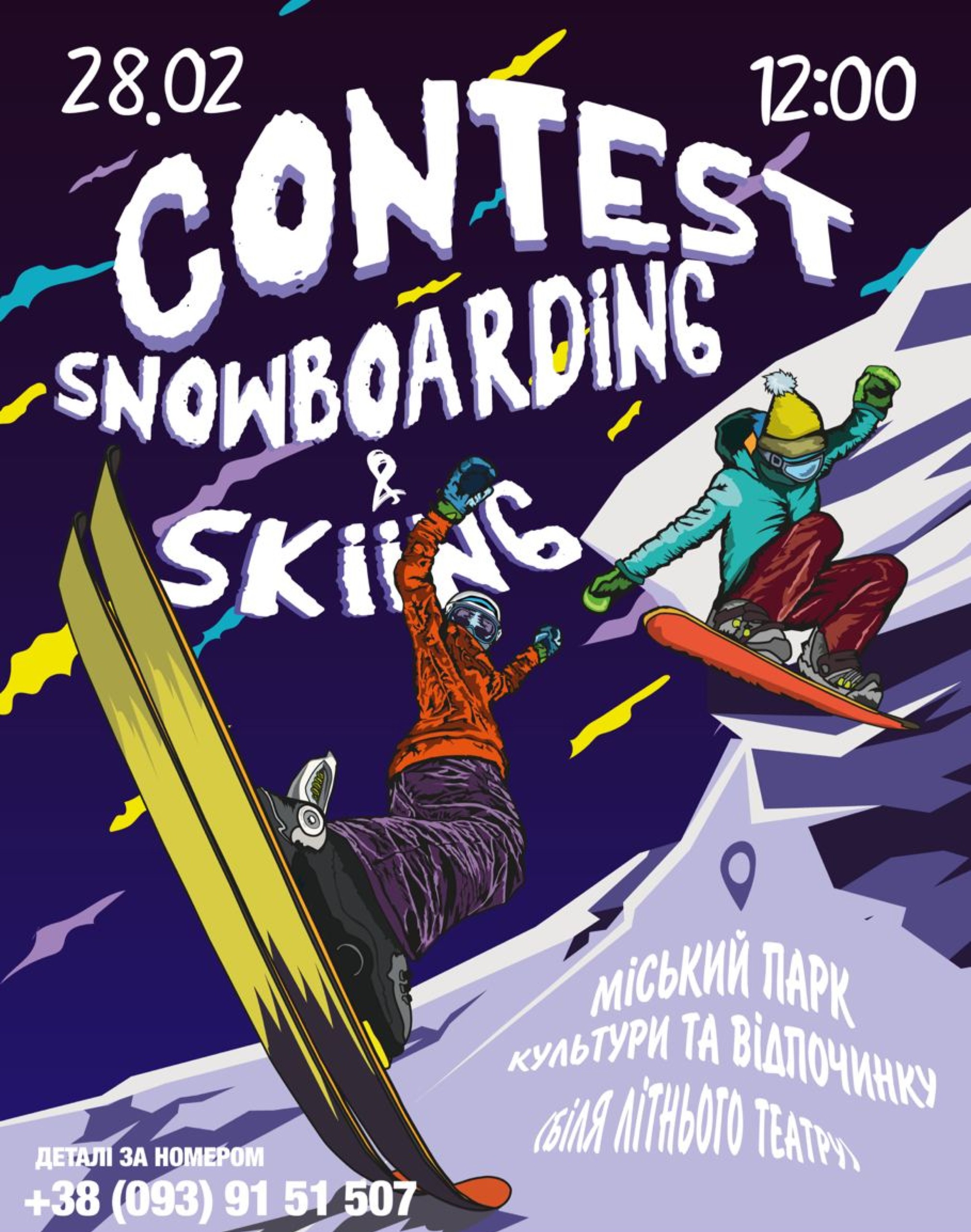 Poster for snowboarding and skiing contest